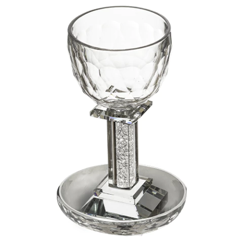 Elegante y única, esta copa combina cristal transparente con una base decorada en piedritas. Ideal para brindar con estilo.