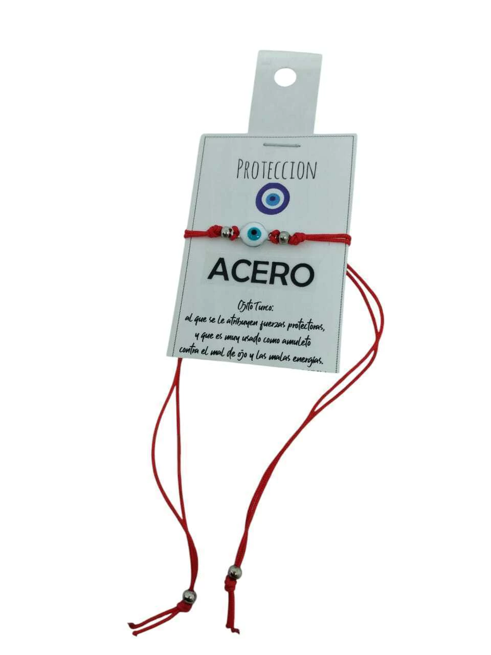 La Pulsera Ajustable Ojito Turco de Acero es una joya única y significativa, ideal para quienes buscan protección y estilo. Este accesorio está confeccionado con un hilo rojo resistente y cuenta con un ojito que puede variar en color, lo que le otorga un toque personalizado y especial.